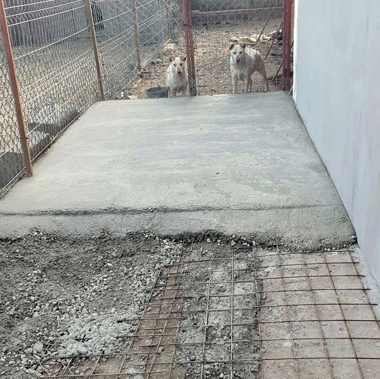 Im Winter grassierte eine ungeheure Virenpest in der gesamten Gegend. Bei allen Rescuern sterben die Welpen wie die Fliegen. Die Tierärzte waren ratlos, konnten zwar immer das jeweilige Virus identifizieren, aber ihm nicht Herr werden, da die Viren in diesem Jahr sehr aggressiv und tödlich waren. Da auch uns im Winter viele Welpen erkrankten und teils starben, mussten die Welpenräume dringend renoviert werden. Man kann sie noch so peinlich reinigen und desinfizieren, kriegt dadurch aber z. B. die hartnäckigen Kokzidienkeime nicht kaputt. Außerdem brauchten wir dringend den Ausbau eines weiteren neuen Raumes als Umsetz-Notfall-Behelf.