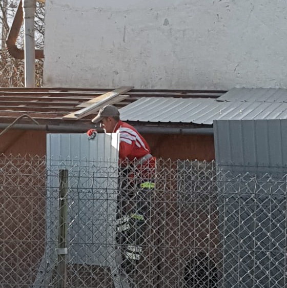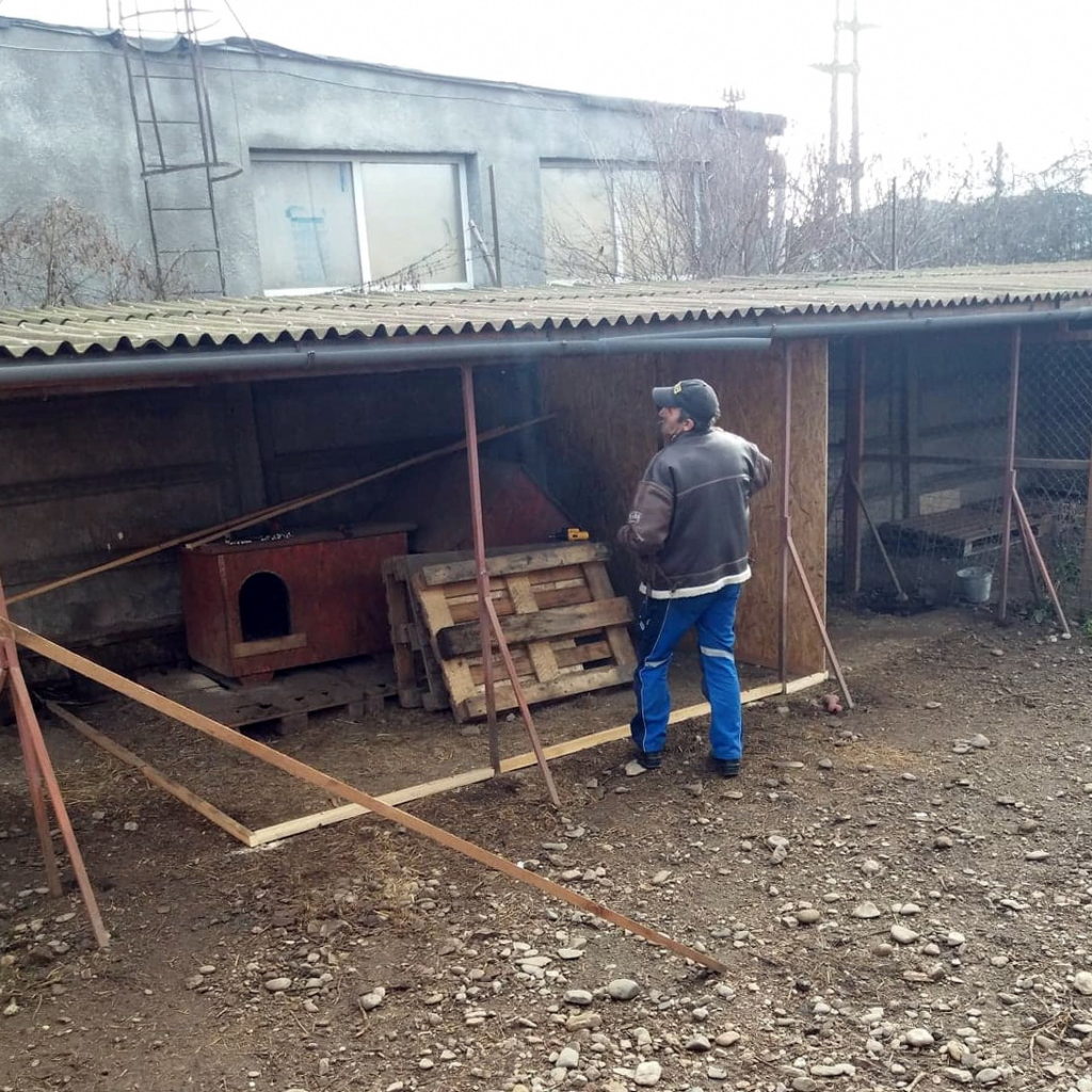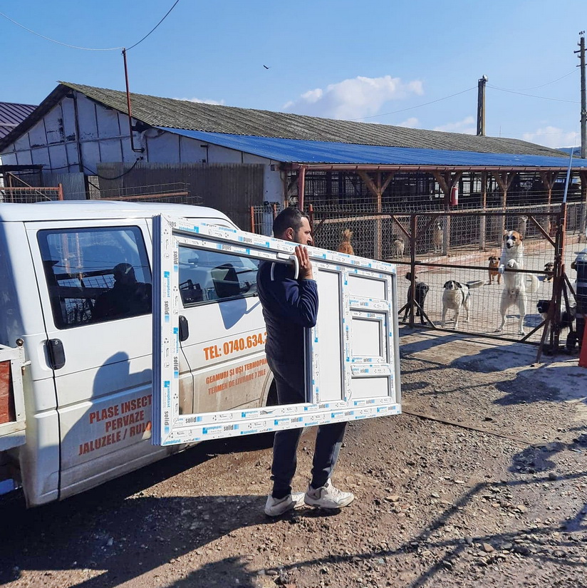 Costel, unser ML-Handwerker, verschloss 20 nach 3 Seiten völlig offene Unterstände (unter denen sich jeweils kaum geschützt die Hundehütten der einzelnen Hunde befanden) mit Platten. So wurden sie zu großen Hundehäusern, in denen die kleinen Hütten nun vor Sturm, Nässe und Kälte geschützt sind bei oft eisigen -10 bis -15 Grad im Winter. Durch die Hundehäuser und die reparierten Dächer hat sich die Lebensqualität der Hunde im Vergleich zum Vorjahr um 100 % verbessert. Auch für Norica und Vali bestellten wir Thermo-Arbeitsbekleidung.