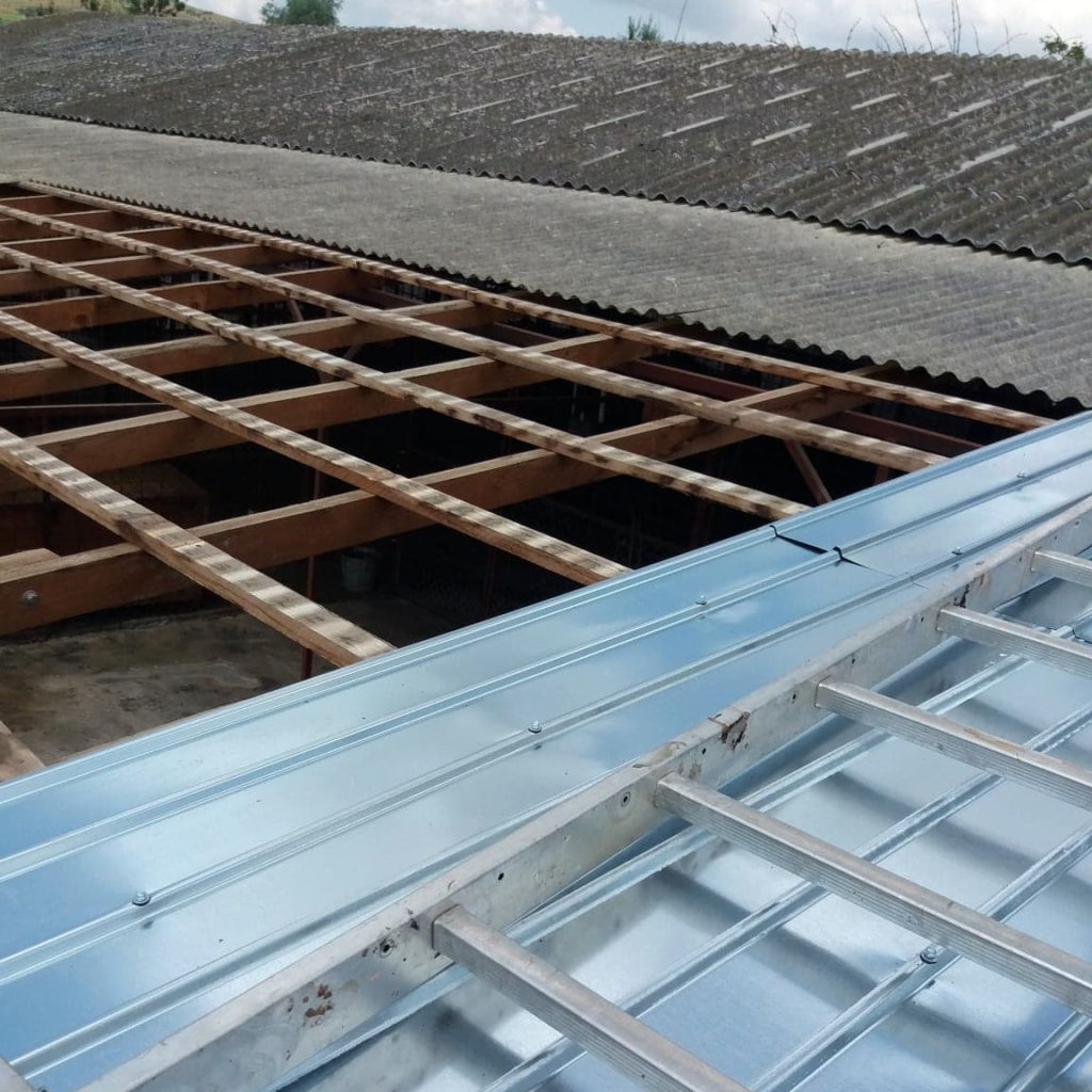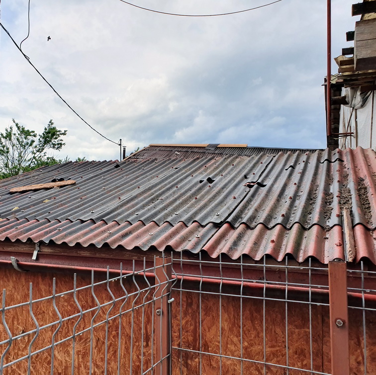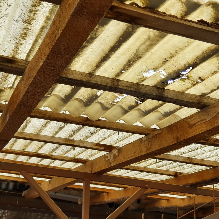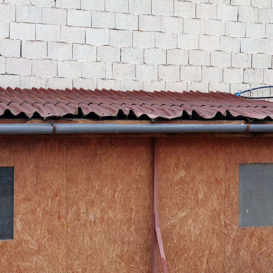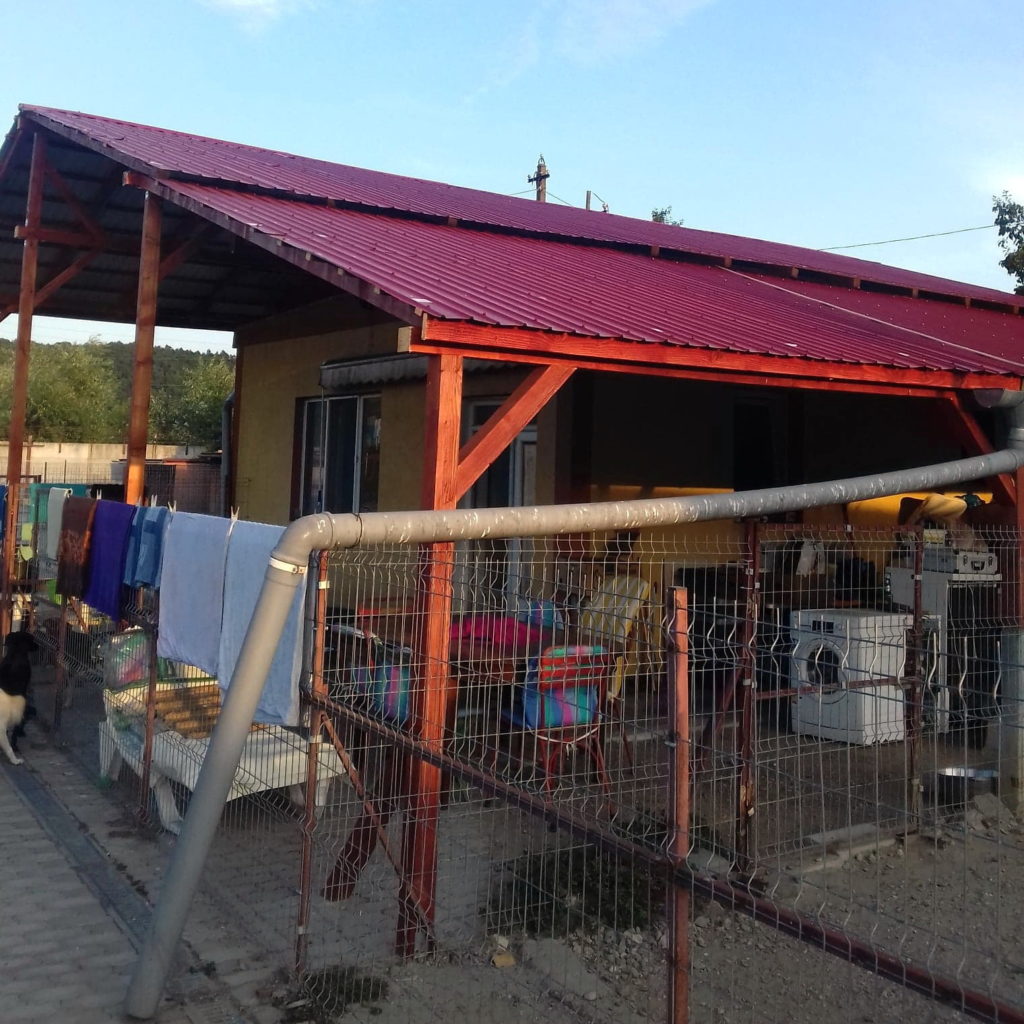 Die meisten Dächer waren undicht, überall regnete es herein, insbesondere das des Haupthauses. Der Wind pfiff durch alle Ecken. Diese Dächer wurden erneuert und repariert. Nun hatten Norica und ALLE Hunde vor dem Herbst dichte und sichere Dächer über dem Kopf! Zugleich haben wir das Dach des Hauses rundherum verlängert und damit eine Art überdachte Terrasse geschaffen.