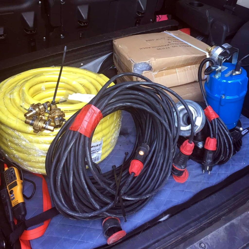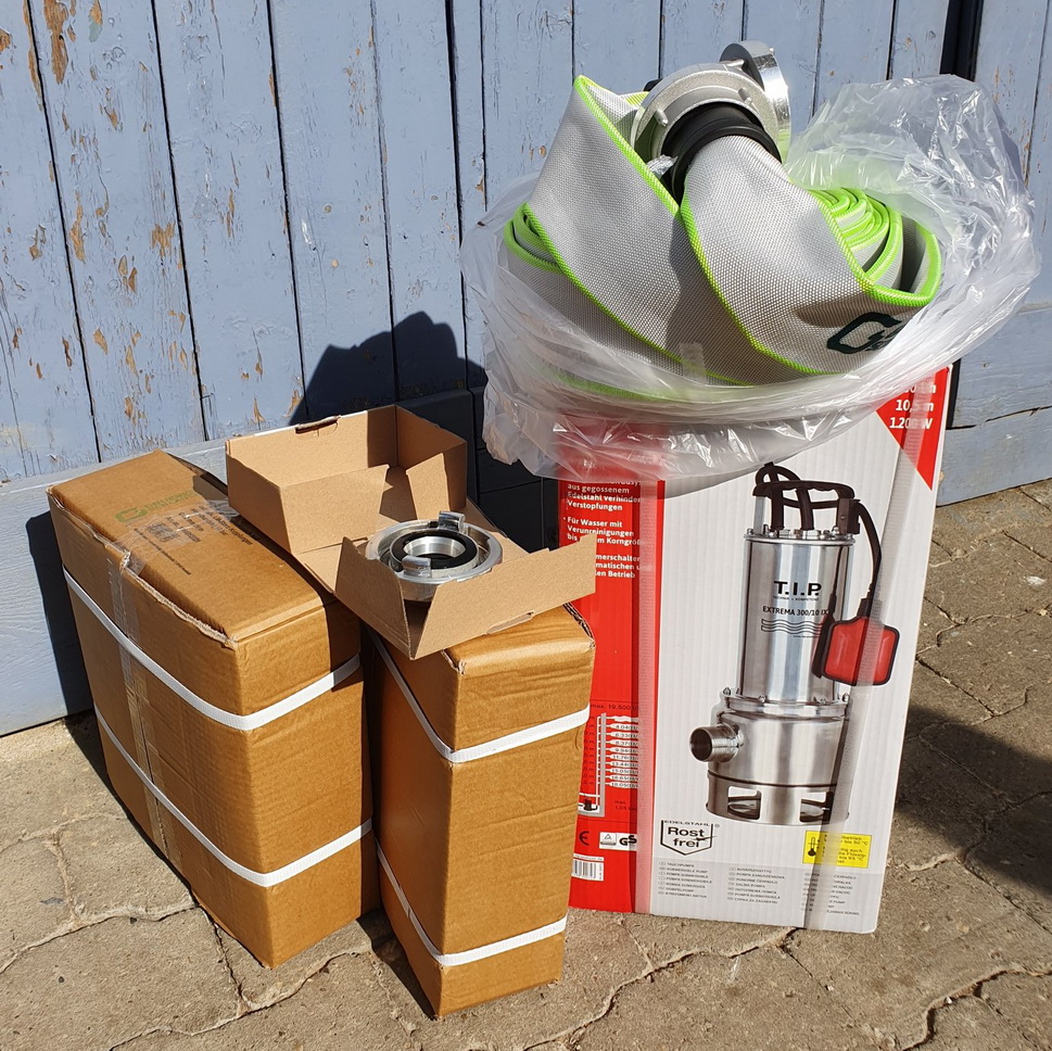 Es regnete sehr viel. Wir mussten Pumpen und Zubehör besorgen, weil der zweite Hof ständig extrem unter Wasser stand.